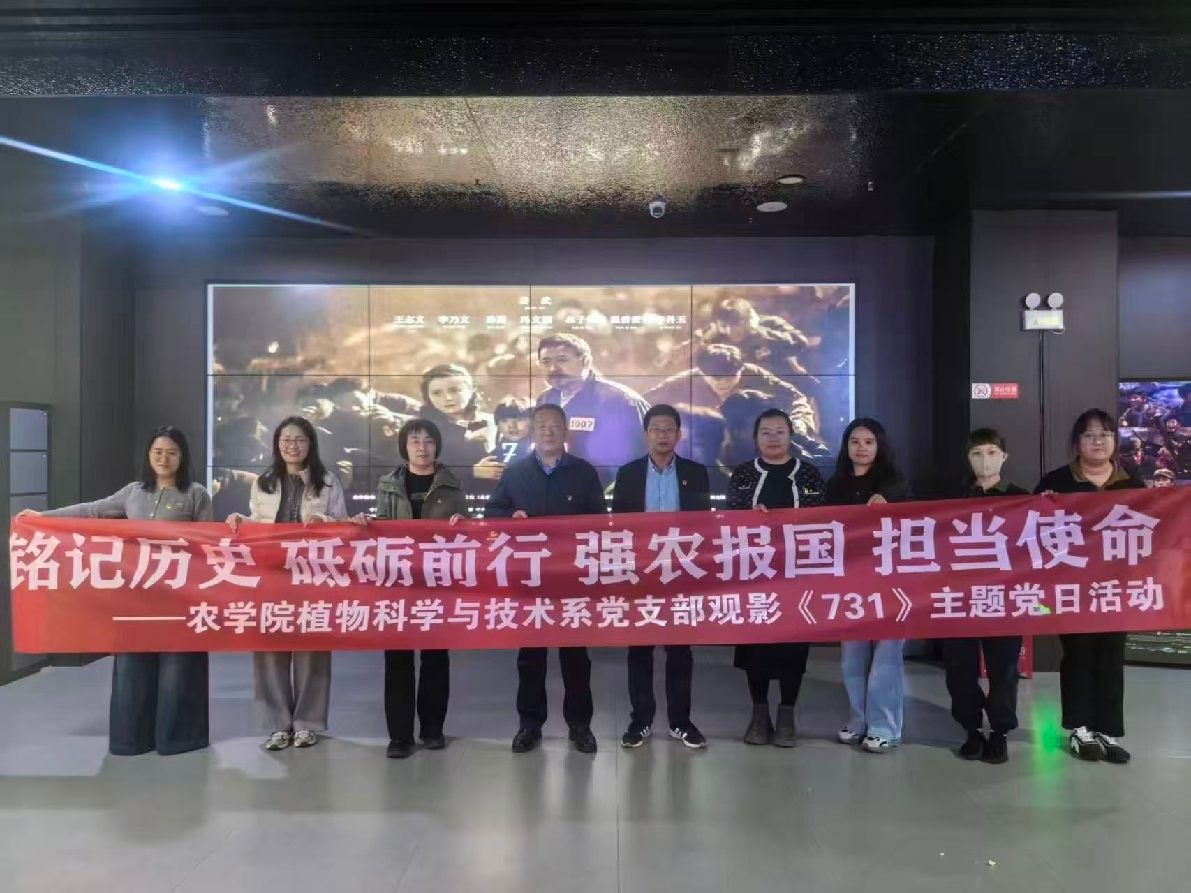 为弘扬爱国主义精神,激发党员干部强农兴农的使命担当,11月13日,内蒙古农业大学农学院植物科学与技术系党支部组织开展了“铭记历史砥砺前行,强农报国担当使命”主题党日活动。本次活动集体观看了爱国主义题材电影《731》。