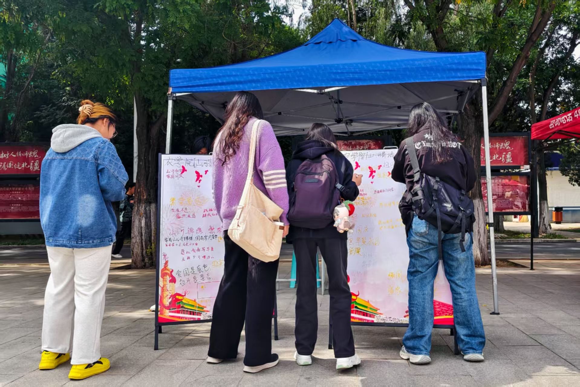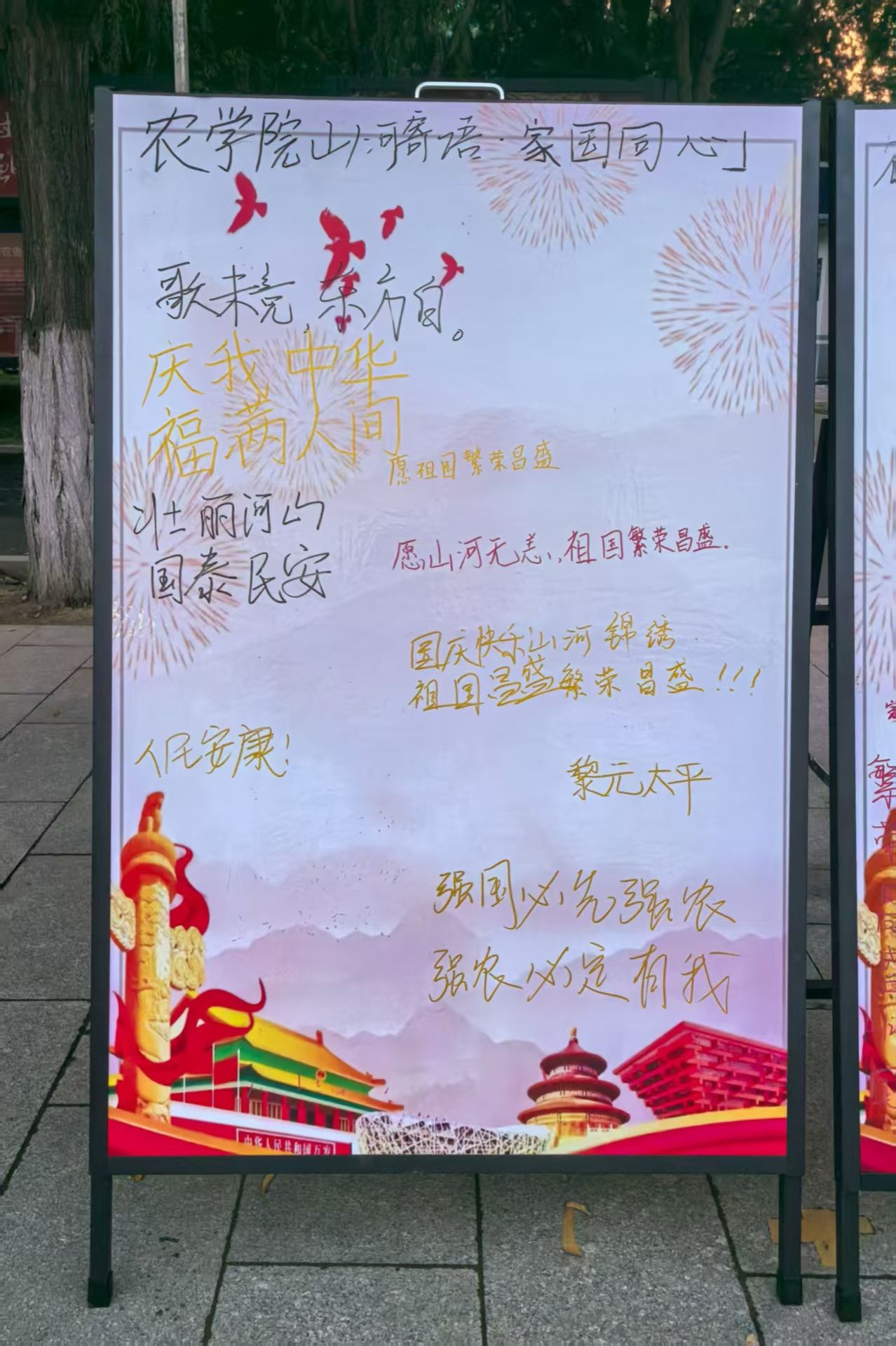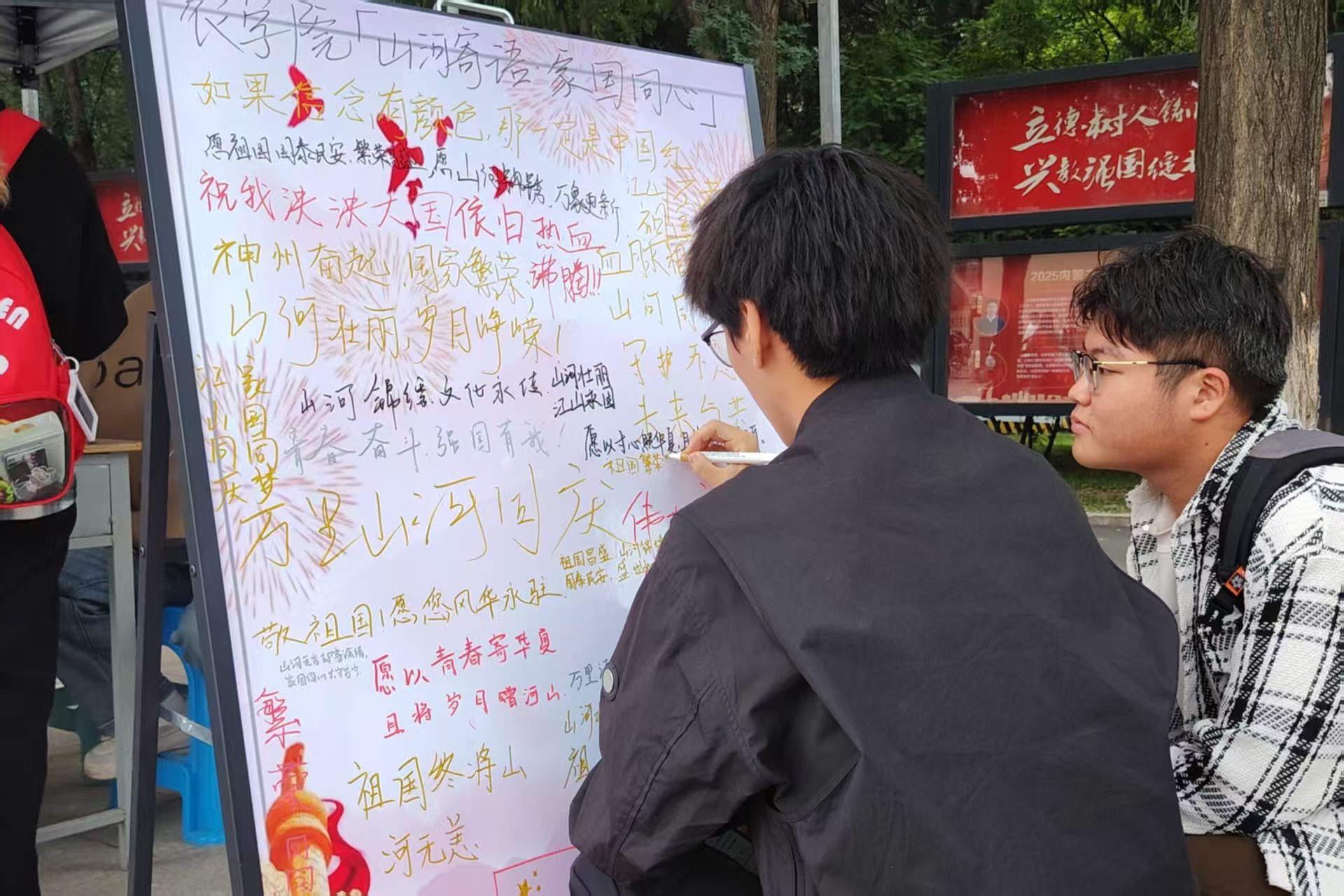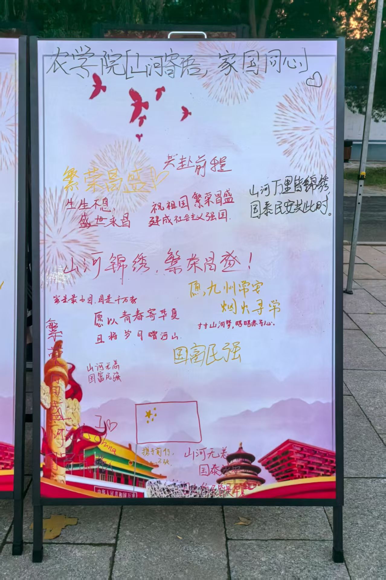 9月25日至9月30日,我院在东区食堂门前开展了“笔绘山河,笺寄家国”——国庆「山河寄语·家国同心」主题活动,吸引了众多学生积极参与。