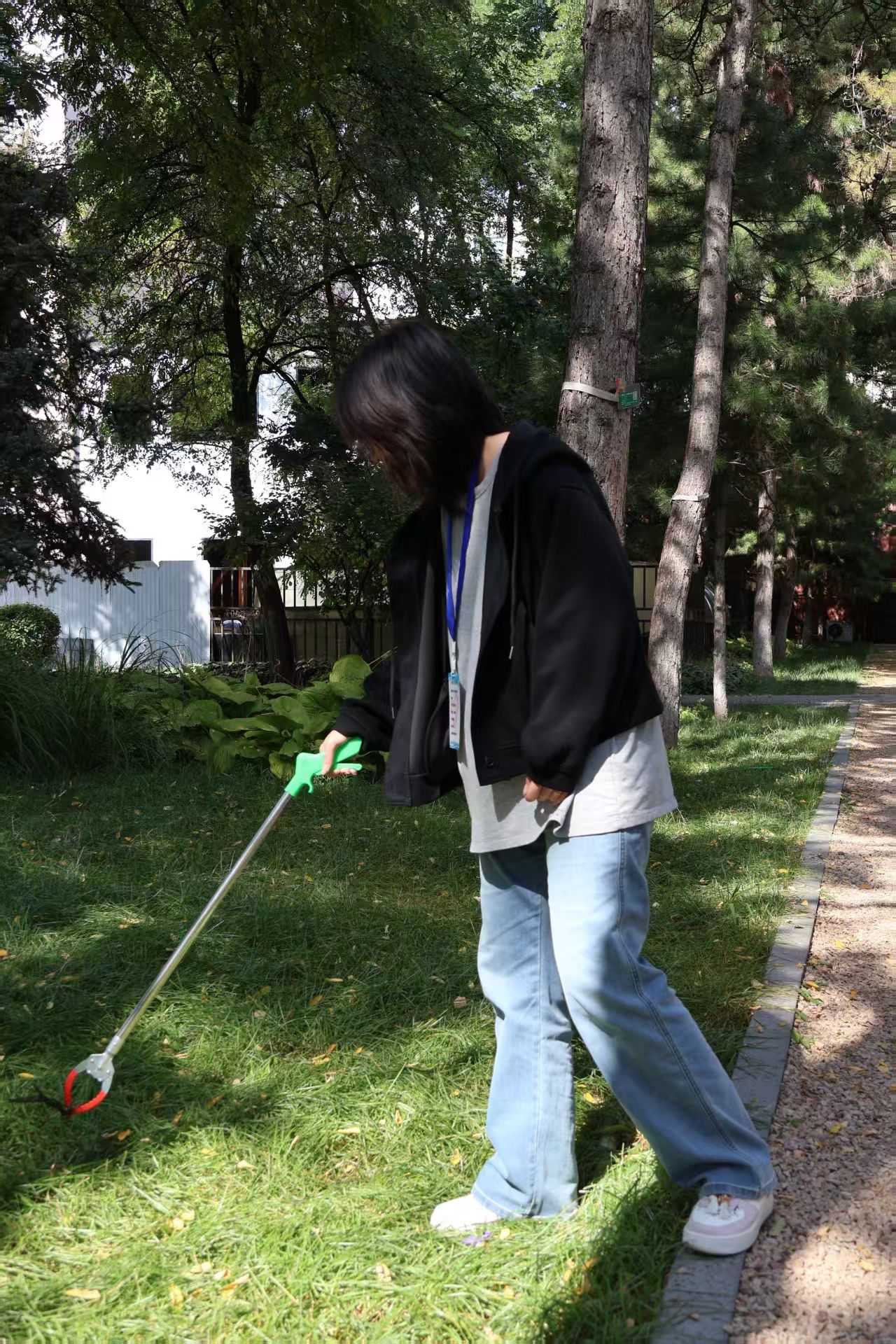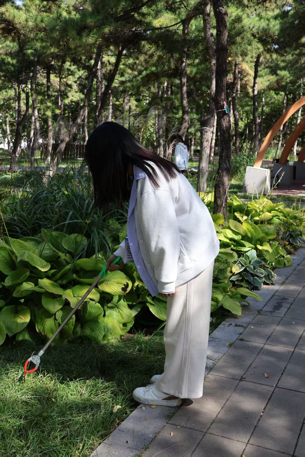 活动伊始,志愿者们便迅速行动起来。他们手持夹子,清扫着路面的落叶,寻找着草丛中的垃圾。尽管秋风阵阵,但不妨碍志愿者们的工作热情,在大家的努力下,校友林的环境卫生状况得到了有效的改善。