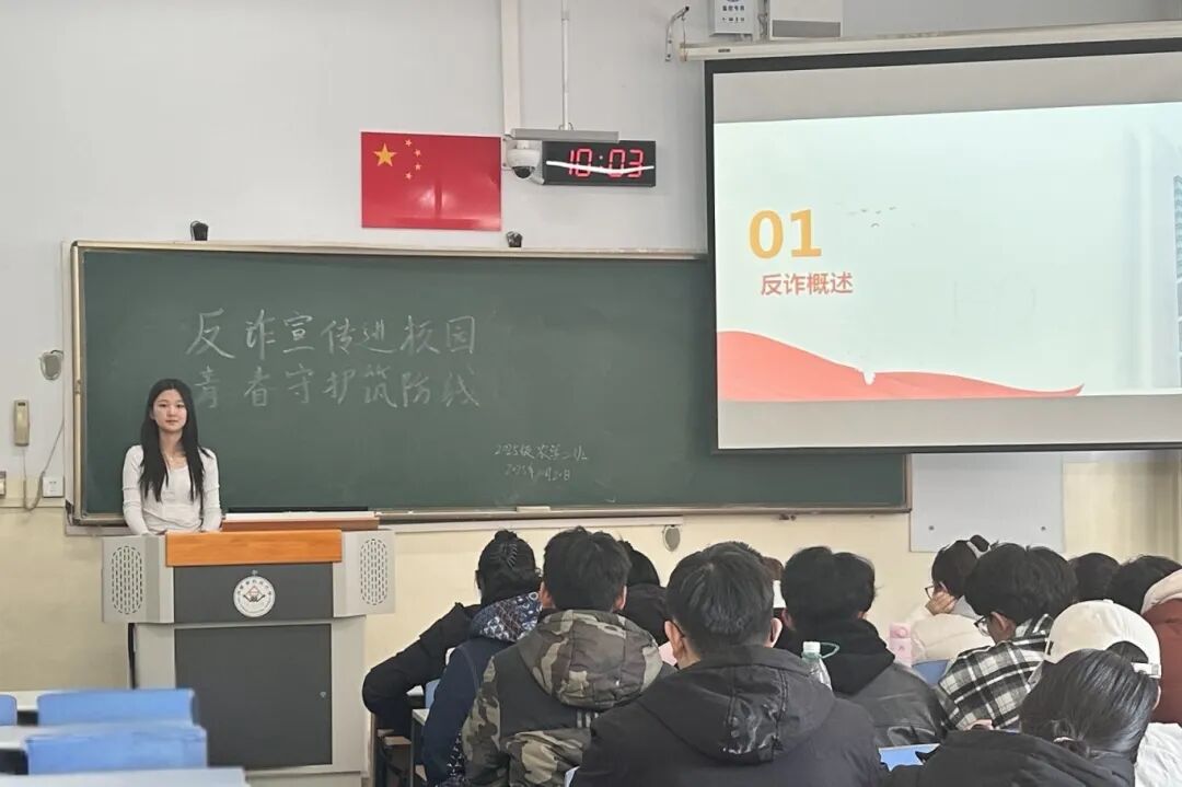 当前,电信网络诈骗已形成专业化、链条化犯罪模式,诈骗手段持续迭代升级,从传统的虚假中奖、冒充客服,延伸至“杀猪盘”、虚假投资理财、冒充公检法等新型骗局,隐蔽性和迷惑性极强,为了增强学生们的反诈意识,我院组织各团支部开展“反诈宣传进校园,青春守护筑防线”为主题的团日活动。
