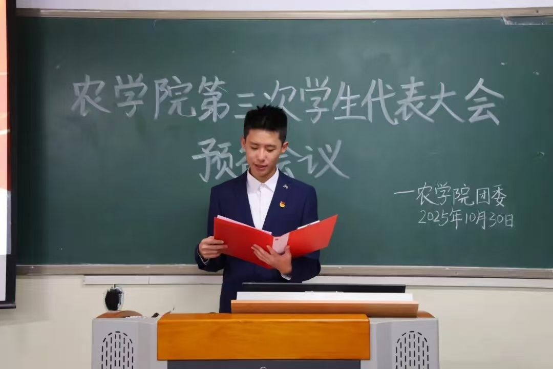 大会伊始,由孙宇泽主席代表大会工作委员会作第三次学生代表大会筹备工作报告。报告中对大会的筹备工作以及会中选举人的确定进行了宣读。随后,他代表大会资格审查组作大会代表资格审查报告,公布了候选人的确定依据。紧接着,孙主席进行了学代会日程及各项会议议程和学代会选举办法的宣读与表决,通过了内蒙古农业大学农学院第三次学生代表大会常任代表候选人、第二十八届团委学生会主席团成员候选人名单以及通过农学院第三次学生代表大会选举监票人及计票人名单。最后由孙宇泽主席宣布了明日大会正式会议须知。