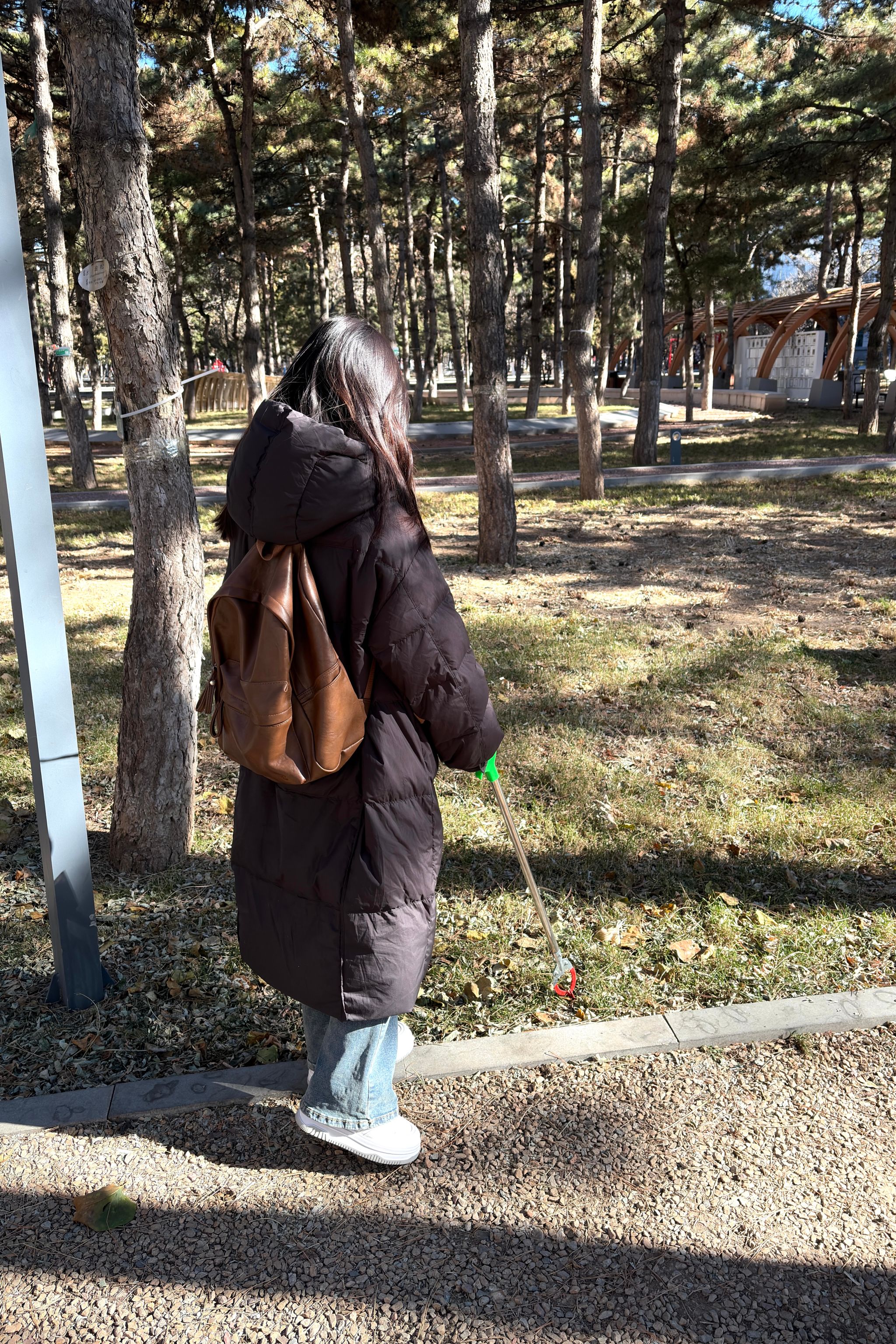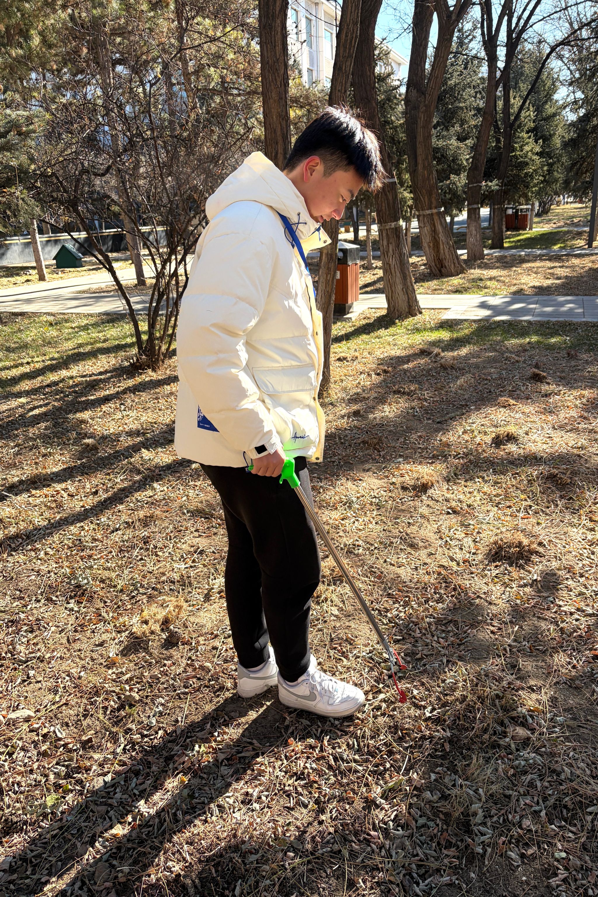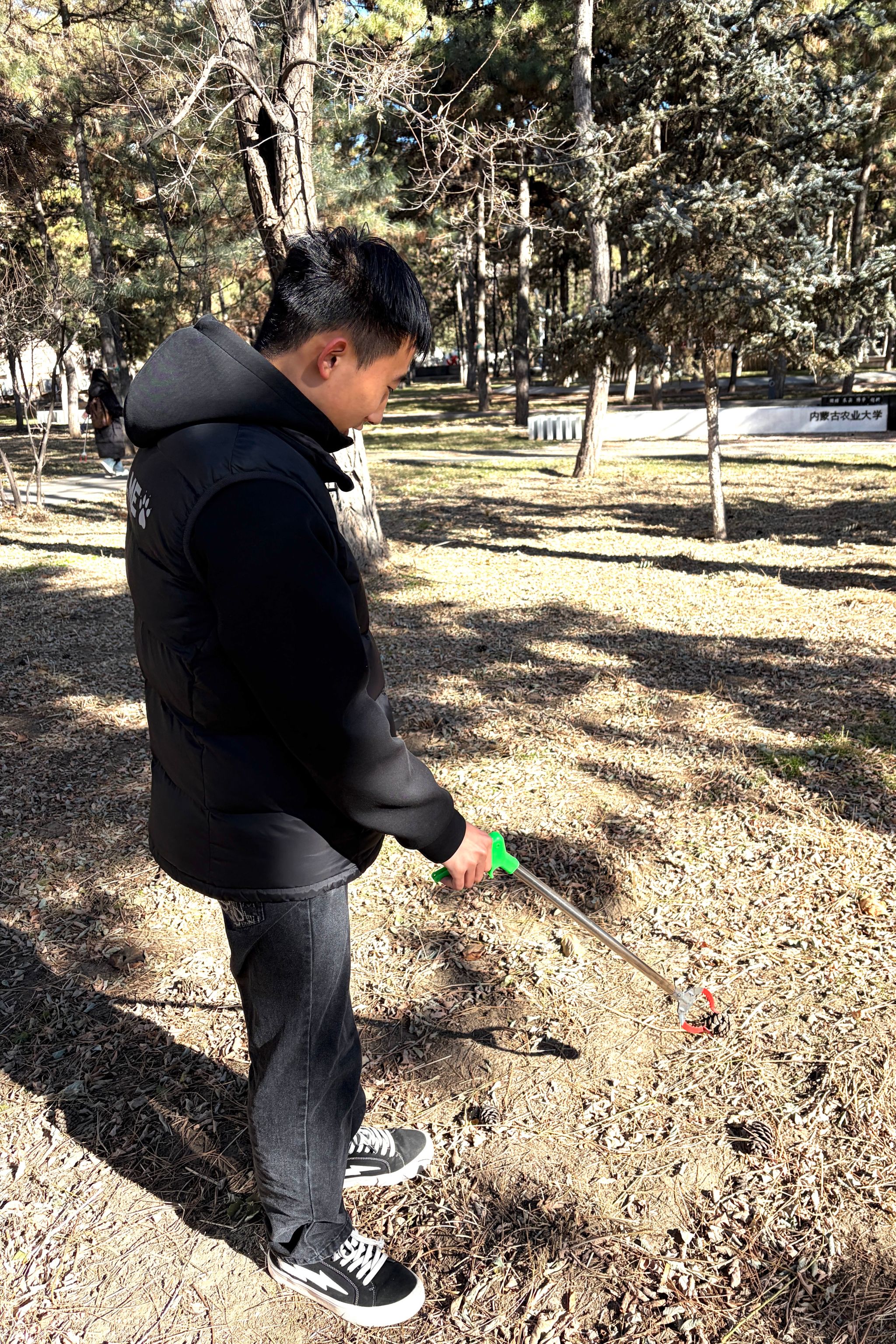 各位志愿者提前在农学院前集合,领取劳动工具。活动迅速开展,各位同学互相配合,无论是林荫小道上的碎纸,凉亭处桌椅上的垃圾,还是角落里的塑料垃圾都被志愿者们清理干净。经过志愿者们的忙碌清扫,校友林重返整洁,卫生环境有了切实改善。志愿者们不畏寒风,始终保持高涨的劳动热情,在校友林中细致地完成清扫活动。