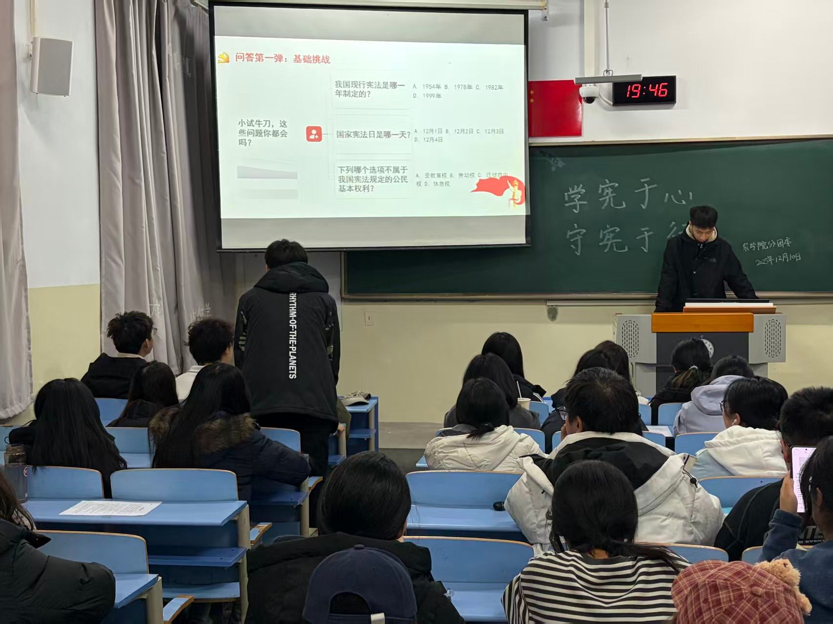 为深入学习贯彻法治思想,全面贯彻落实国家"八五"普法规划要求,12月10日晚,我院于东主123成功举办主题为“学宪于心,守宪于行”的宪法宣传活动。