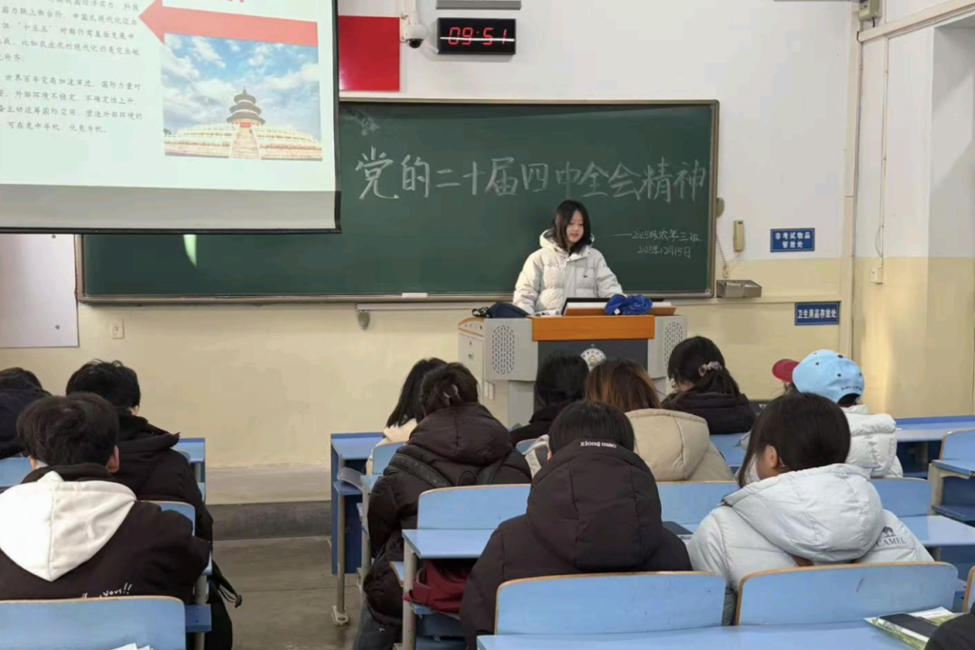 本次专题学习活动取得了显著成效。全体学生通过系统学习与深入研讨,全面深化了对党的二十届四中全会精神的理解把握,特别是对"六个坚持"重要原则和高质量发展要求的认识更加透彻,政治认同和思想自觉显著增强。围绕"新质生产力发展",“青春建功'十五五'"等议题的充分讨论,有效激发了同学们将个人发展融入国家战略的使命感,增强了行动主动性,明确了学习成长与服务社会的结合点。通过庄重的实践承诺环节,进一步强化了理论学习的实践导向,推动全会精神真正内化为价值追求、外化为自觉行动。活动不仅提升了学生的理论素养和政治站位,更营造了昂扬向上、团结奋进的良好氛围,为培养担当民族复兴大任的时代新人奠定了坚实的思想基础。