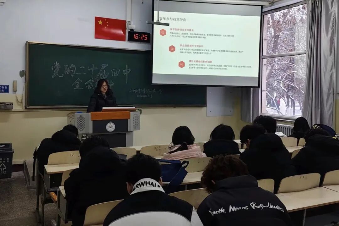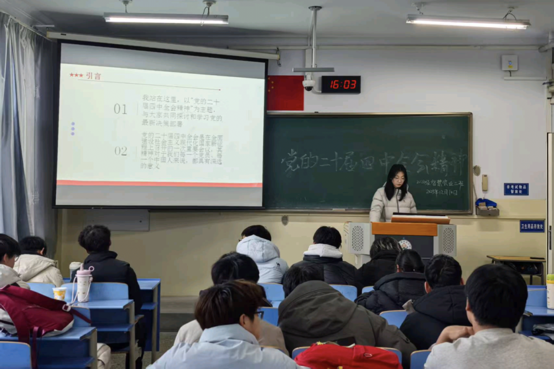 为深入学习宣传贯彻党的二十届四中全会精神,引导广大青年深刻领会全会核心要义,自觉将思想和行动统一到党中央的决策部署上来,坚定理想信念,筑牢思想根基,明确奋斗方向,我院组织各团支部集中开展了以“学习党的二十届四中全会精神”为主题的专题学习活动。