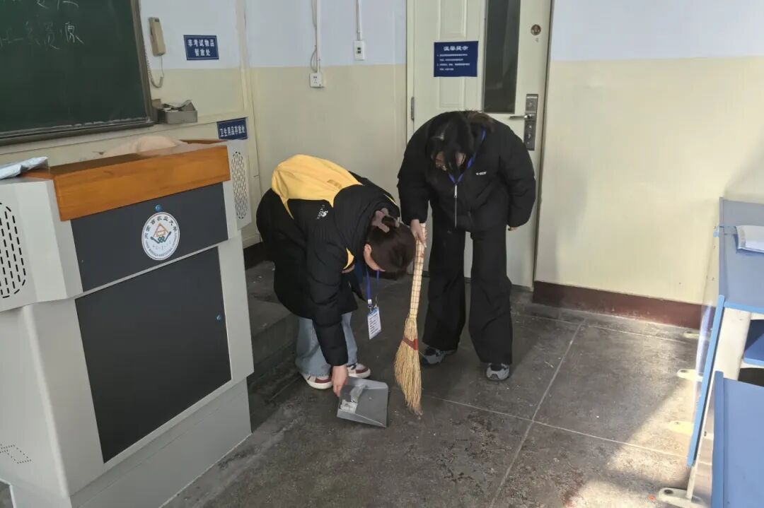 活动伊始,志愿者们提前备齐扫帚、簸箕、黑板擦、垃圾袋等清洁工具,集合后迅速明确分工、高效协作。有的手持扫帚弯腰俯身,对走廊、教室角落的纸屑与灰尘进行细致清扫;有的专注擦拭黑板,将残留板书与粉笔灰彻底清理;还有的负责垃圾分类打包,将垃圾有序运送至指定投放点。大家各司其职、配合默契,不放过任何一处卫生死角,用双手为师生们还原了整洁清爽的教学空间。