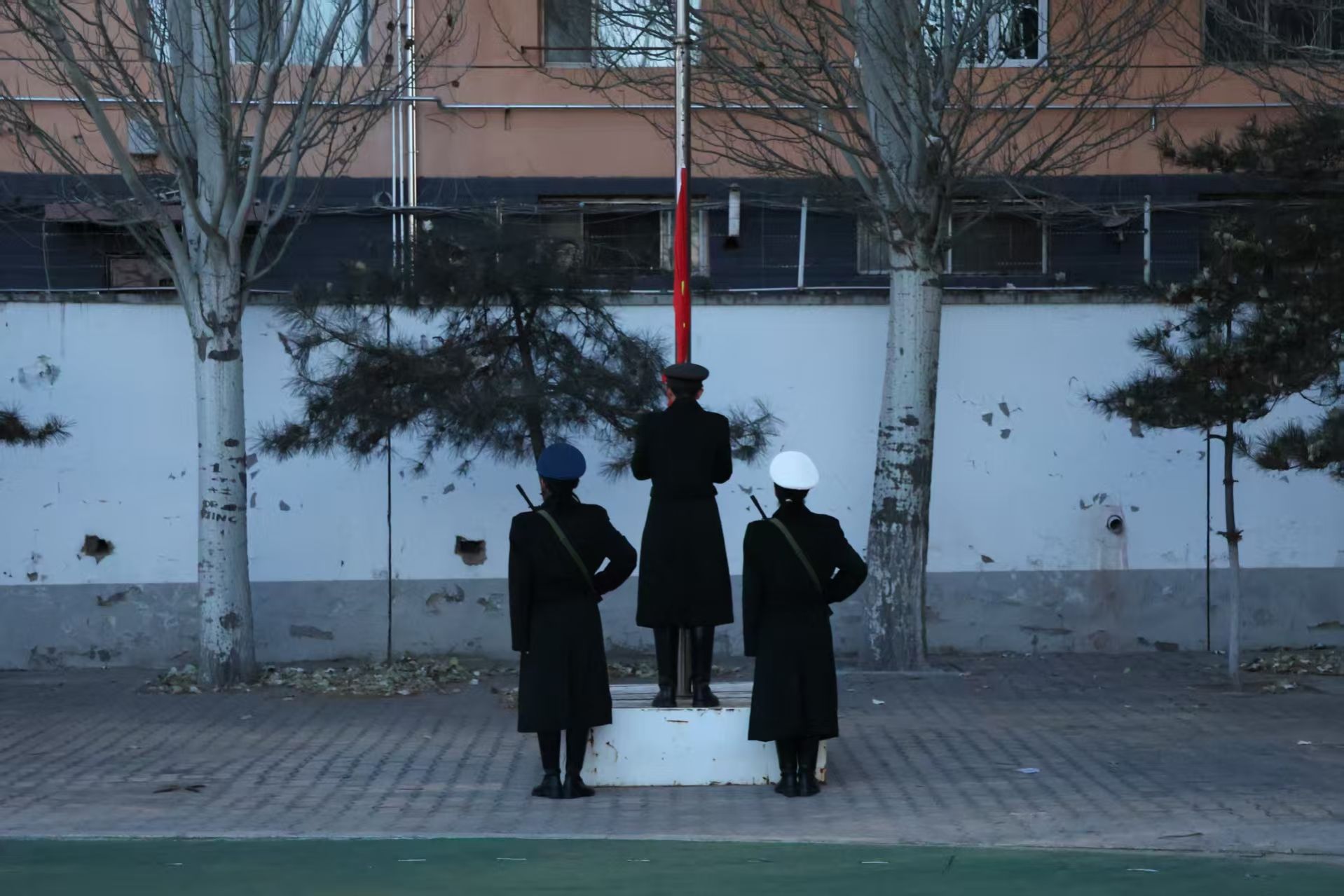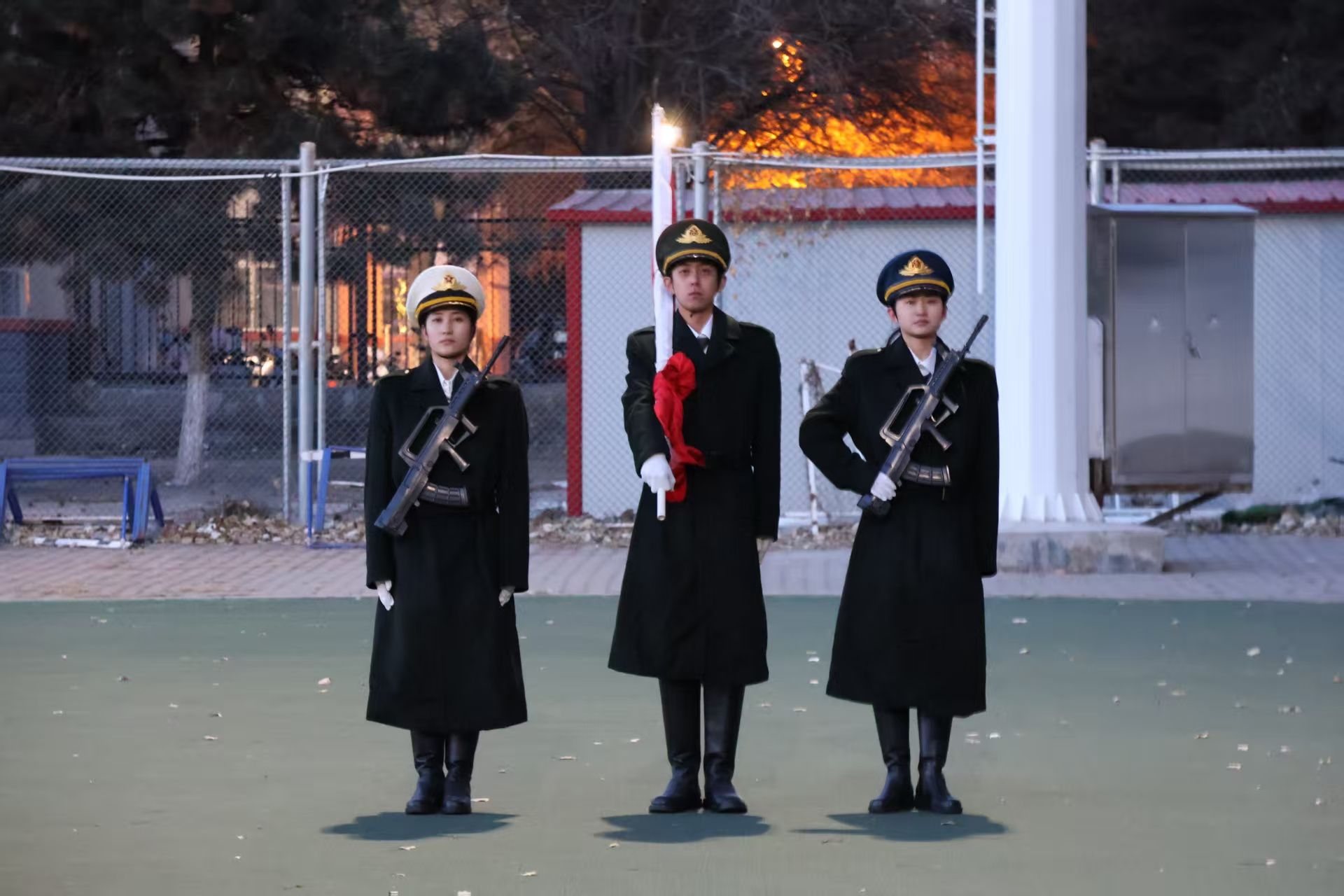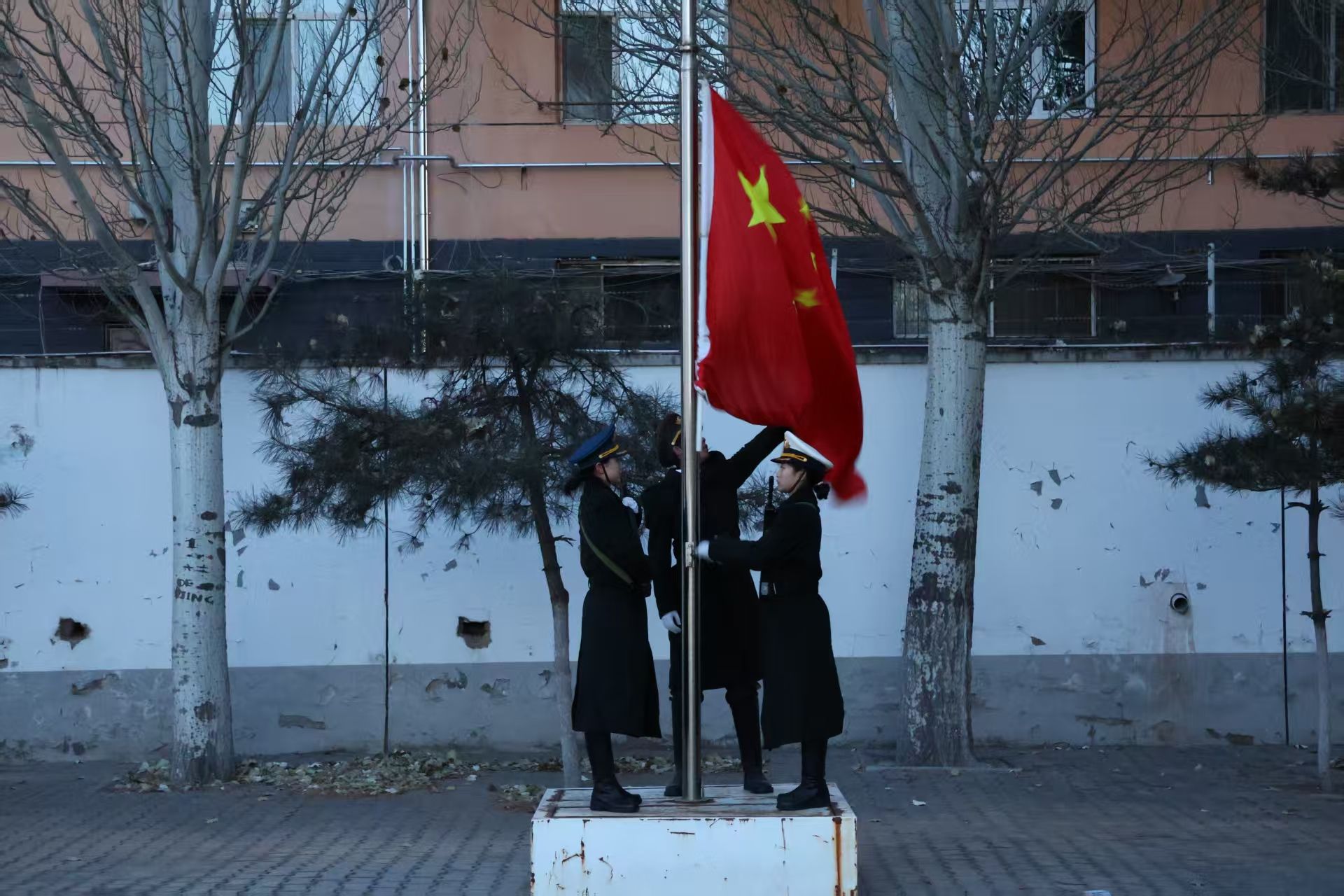 本次升旗仪式在寒风冷冽中举行,但全院师生积极参与的爱国热忱不减,是一次深刻的爱国主义教育。