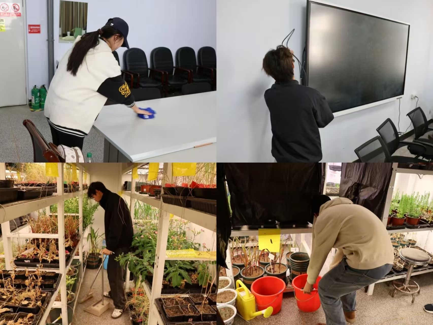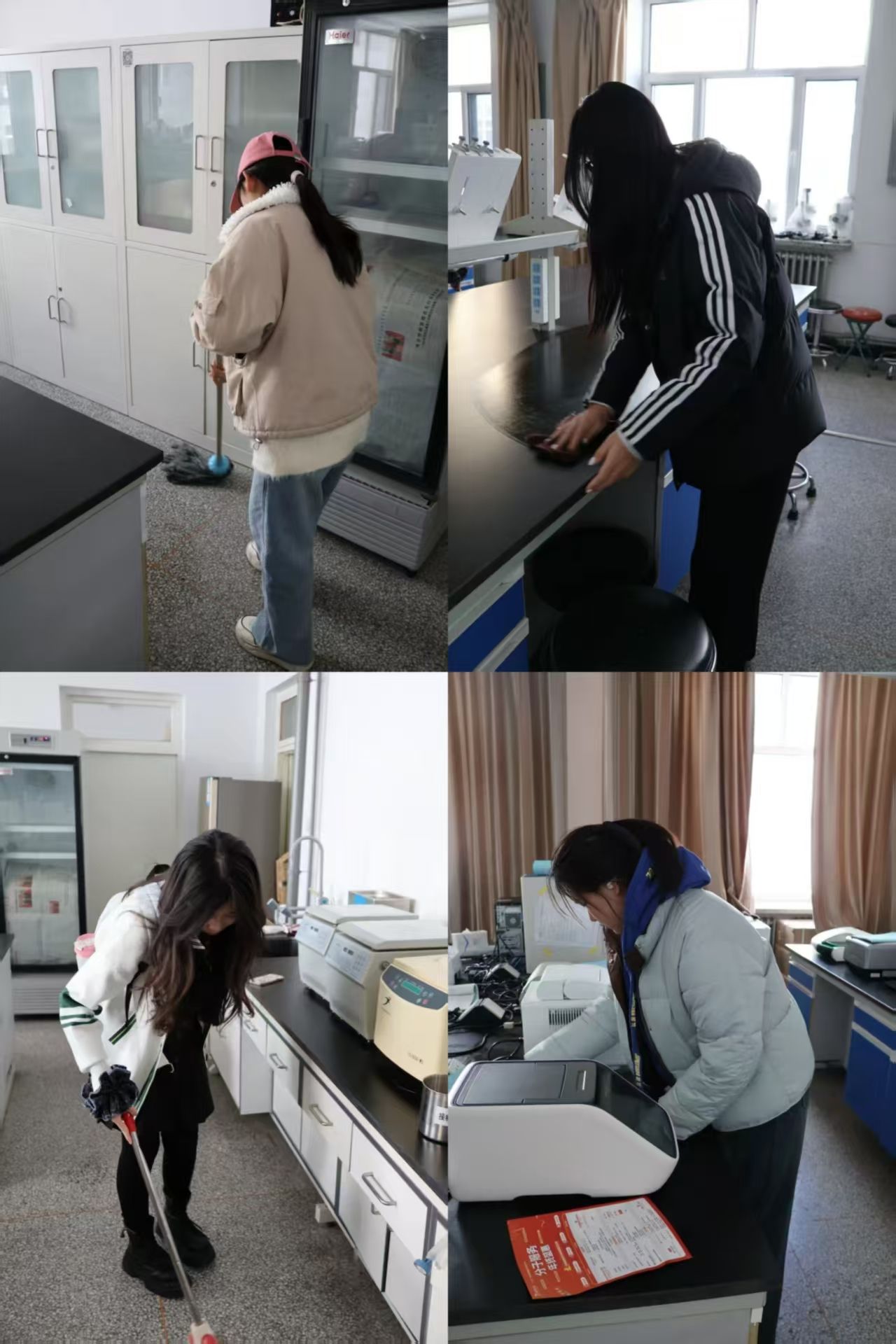 活动伊始,我院分团委心育部、社服部的成员们合理分工,对学院四间实验室进行全面清扫。大家认真擦拭实验台面、门窗玻璃与仪器设备,规整实验用品与桌椅,清扫地面杂物与卫生死角。经过集中清扫,四间实验室环境焕然一新,物品摆放规范有序,为师生开展实验教学与科研实践提供了干净舒适的空间。
