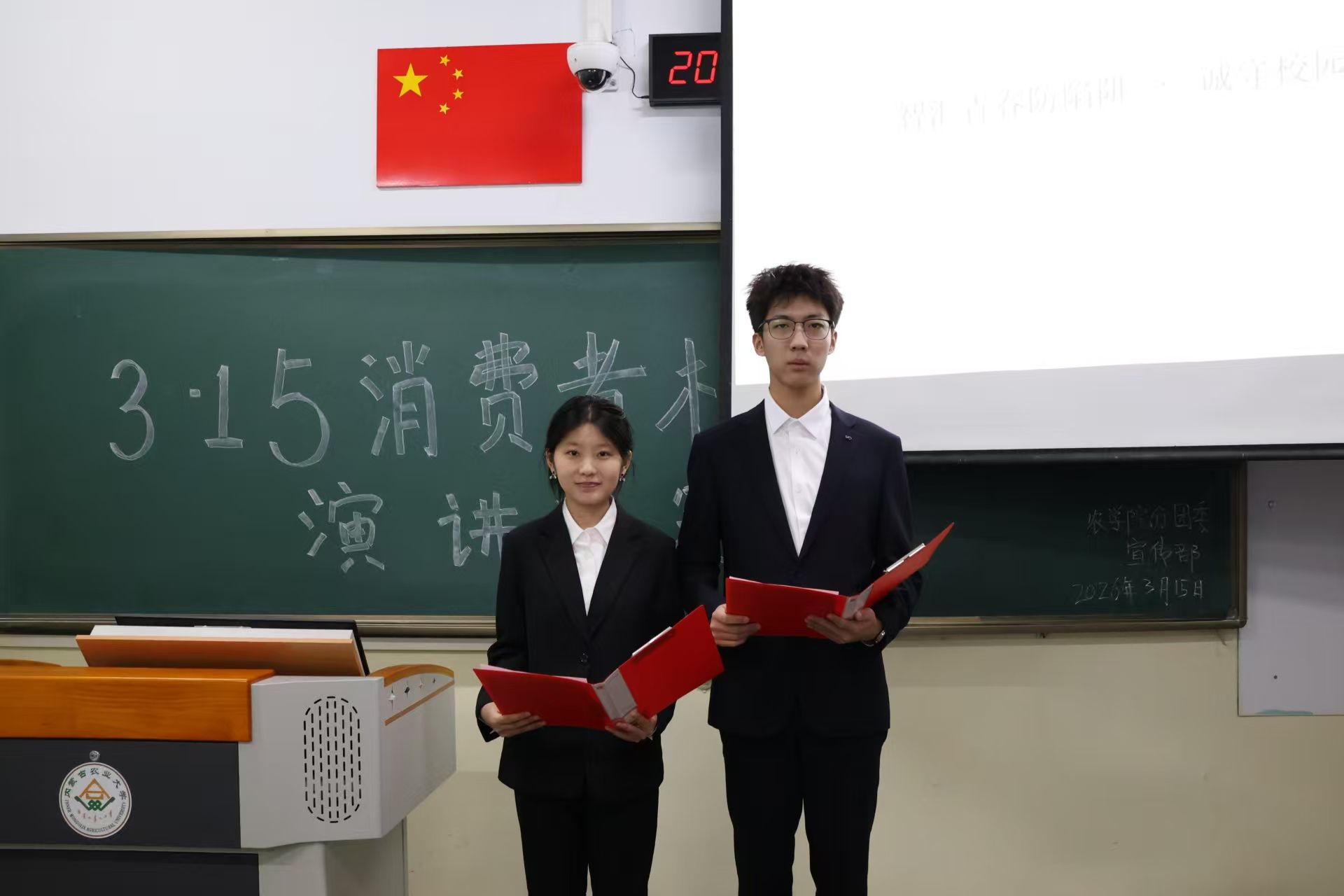 为迎接“3·15”国际消费者权益日,进一步增强学生的消费维权意识与自我保护能力,3月15日晚,我院分团委在东主楼118教室成功举办了以“智汇青春防陷阱,诚守校园护权益”为主题的消费维权演讲比赛,本次比赛由25级农学三班高佳盈、25级智农一班任禹勃主持。